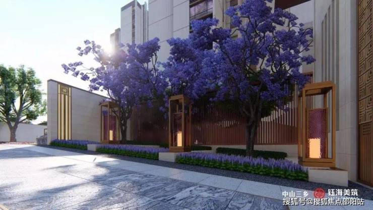 钰海美筑采用新中式设计风格,遵循古典制式,讲求中轴对称。规划为一厅一堂一园一苑,追求中国古典园林的“起承转合”。以“集市—车马院—宅门— 落樱道—丹青院—映月院— 会客厅—闻香院—书房—望山院—茶房”为设计主线,呈现东方园林的神韵。