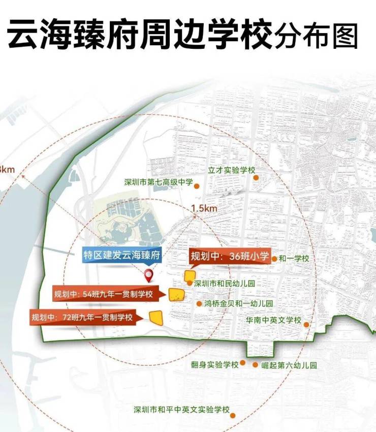家楼下的18班幼儿园(在建)、周边还有深圳沙井街道会展中心学校(规划)、一所36班制小学和一所54班九年一贯制学校。