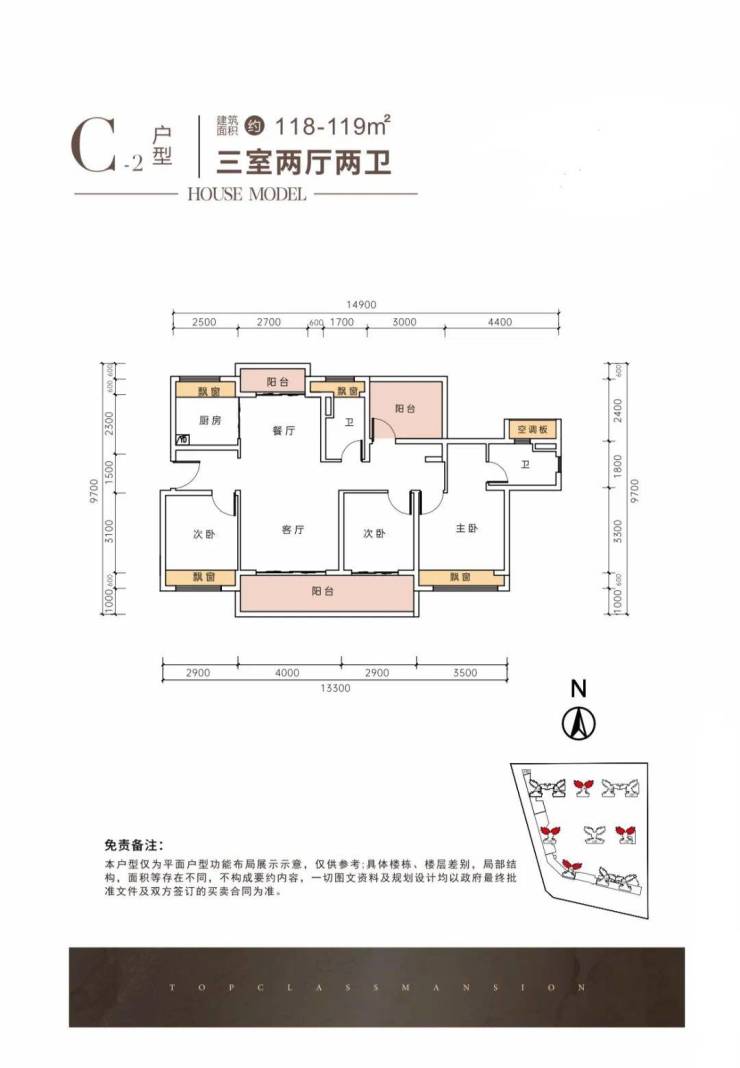 118㎡3+1房2厅2卫,折后总价124-142万左右/套,单价1.05-1.2万/㎡
