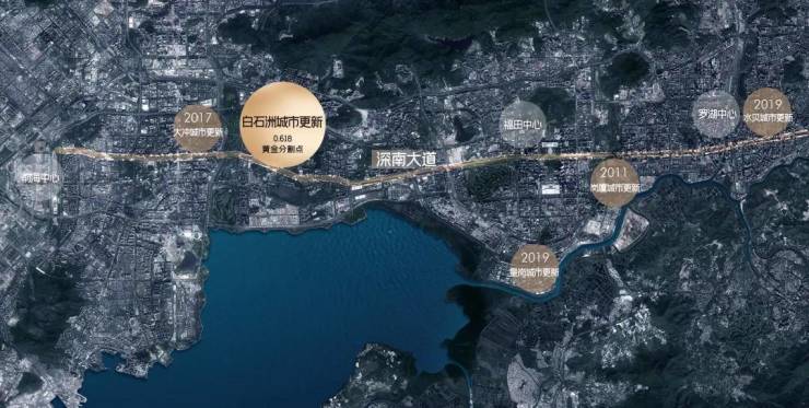 绿景白石洲位处深圳 gdp 首区南山区的核心地段,深南大道横轴和大沙河科创走廊纵轴交汇的超级十字轴心,链接四大总部基地,聚合城市发展能量,为未来总部基地规划的精英技术人才打造高端生活配套区,代言深圳价值高度。