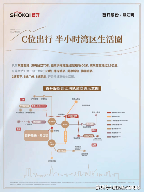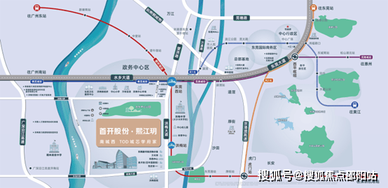 🔘3城轨:穗深城轨,连通广州机场、深圳机场;佛莞城轨,西起佛山东连松山湖;莞惠城轨,直通主城区及惠州。