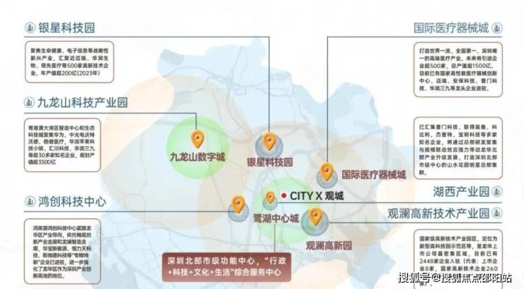 观澜占据龙华70%产业,鹭湖中心城与九龙山数字城双核驱动,聚焦人工智能、生物医疗等高新技术产业;