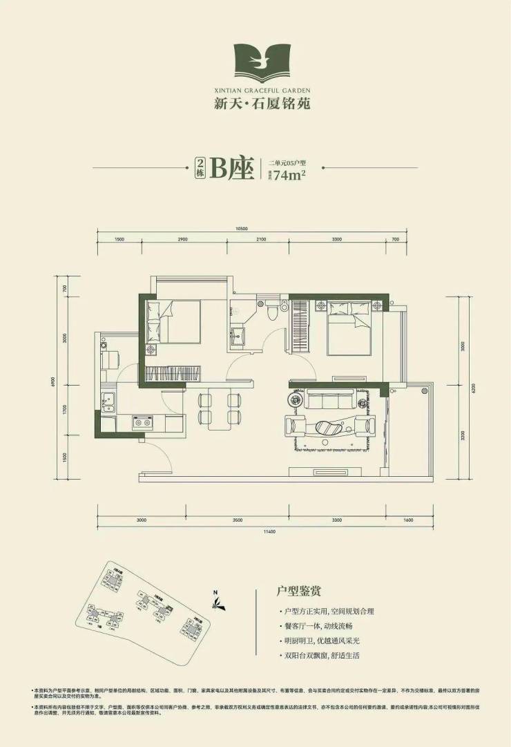 🔺2栋B座二单元04、05户型:面积约为72-74㎡的2房2厅1卫。