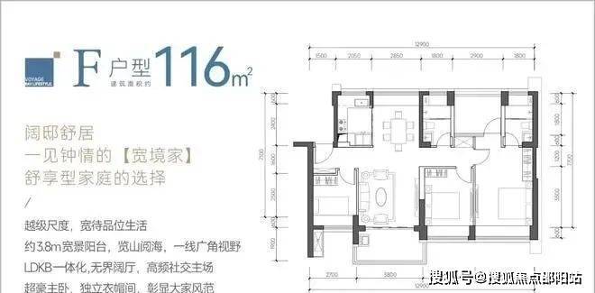 116㎡的4房2厅2卫(F户型,分布在2栋02/03/04户型,朝东南和西南)