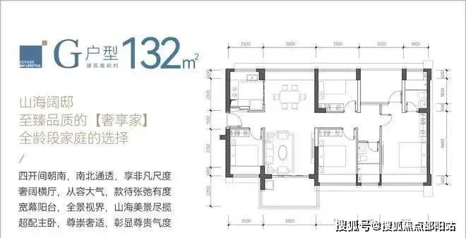 132㎡的5房2厅2卫(G户型,分布在6B栋02户型,朝东南向)