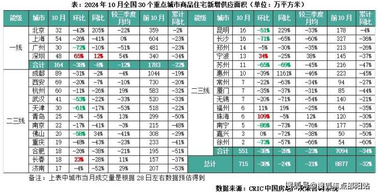 市场月报|10月供应新低而成交环增44%,一线政策利好显著放量(2024年10月)