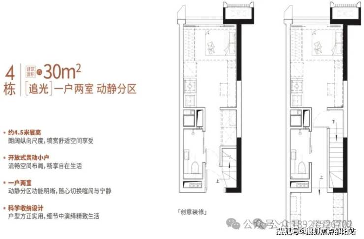 【小户型、低总价】 30-42㎡百变空间,上下空间互不干扰,分水表分电表,买一租二