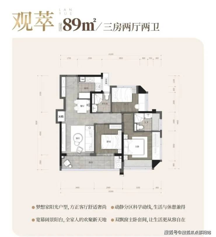 建面约89㎡ 3房2卫