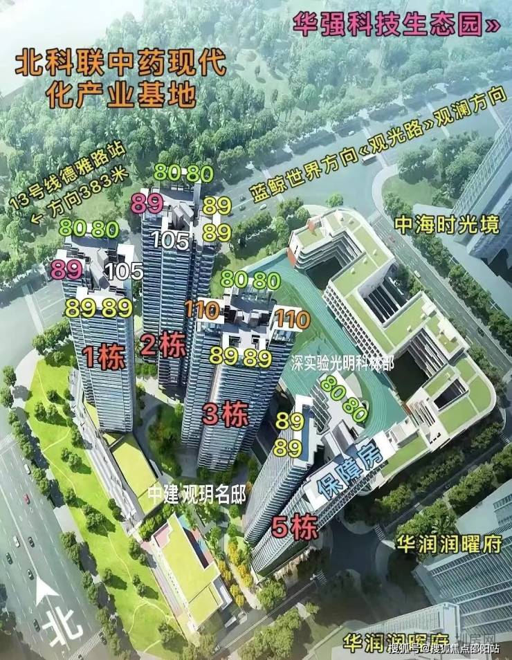 中建观玥坐落于光明区政府东南侧,光侨路与观光路交汇处,邻近地铁13号线德雅路站,除了有全区TOP级的市政配套,还有稀缺的生态资源。