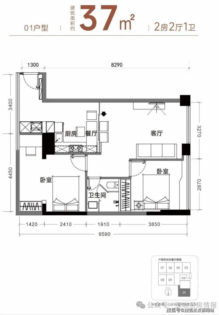 【产品面积】约37㎡两房(实际套内使用面积接近54㎡)