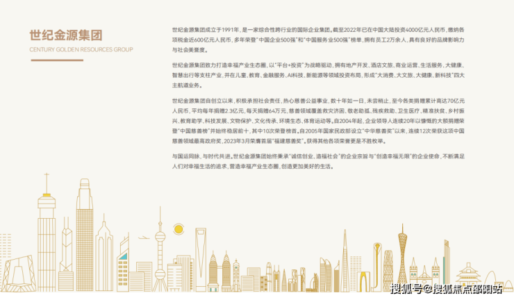 世纪金源成立于1991年,是一家综合性跨行业的国际企业集团。截至2022年已在中国大陆投资4000亿元人民币,缴纳各项税金近600亿元人民币,多年荣登“中国企业500强”和“中国服务业500强”榜单,拥有员工2万余人,具有良好的品牌影响力与社会美誉度。