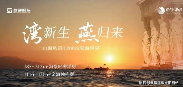 首创南燕湾,背山面海,聚纳万千气象。总占地约1200亩山海大境,总建面约27万㎡,整体容积率约0.5,营造低密私湾墅区,集奢华度假酒店、亲海独栋别墅、海景洋房、主题精品酒店及湾流荟社群于一体。