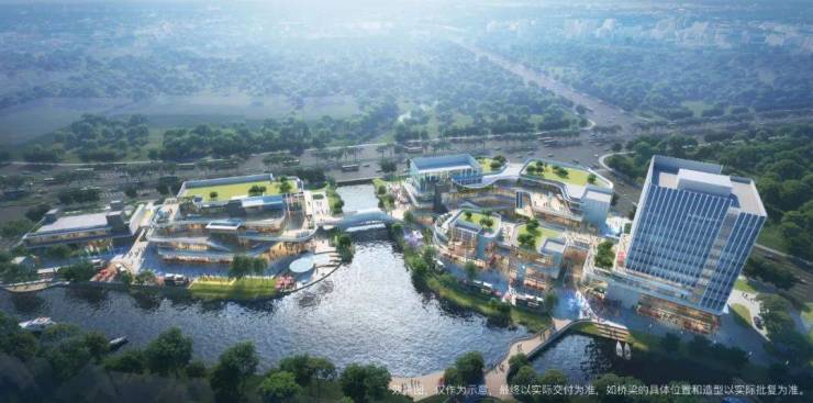 现成的万达广场、合生广场,楼下南侧自建滨水商业体。