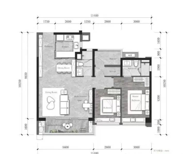 建面约141㎡3+1房2厅2卫做到了真正的南向四开间设计,全明采光、多飘窗、南北通透。并且把面积有效控制在豪宅线下,不浪费一寸面积。