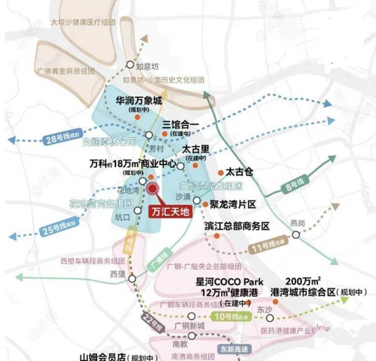 万科万汇天地·瑧园实际上是万科广信资产包的一部分。整个花地湾板块,总占地 1平方公里,1500亩。相当于至少150个足球场的那么大。这连片开发出来,比广钢新城的规模还要大。
