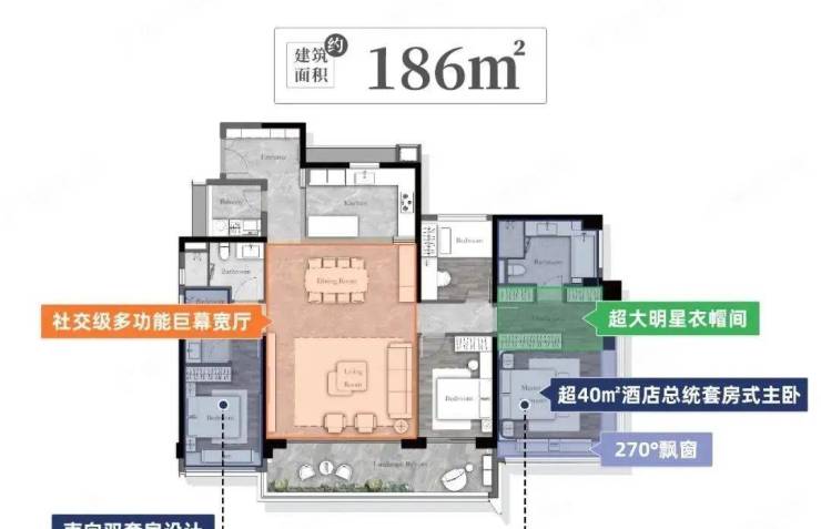 建面约186㎡滨水大平层,集万科研发功力之大成,刷新了广州终极改善高度。