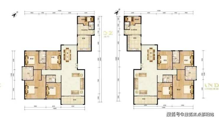 4房(2套房),客厅开间达到6.1米,实际得房率可达95%,不管是得房率还是产品尺度在同类型产品中都占有较大优势。