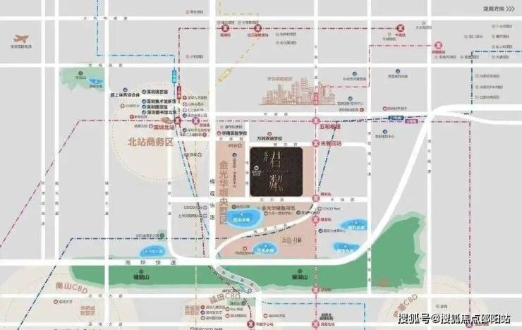 ①双枢纽(深圳北站+五和站),1小时无缝对接大湾区;五和站城际枢纽,5/10号线及规划中的深大、深惠、深广中轴城际。