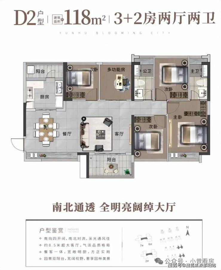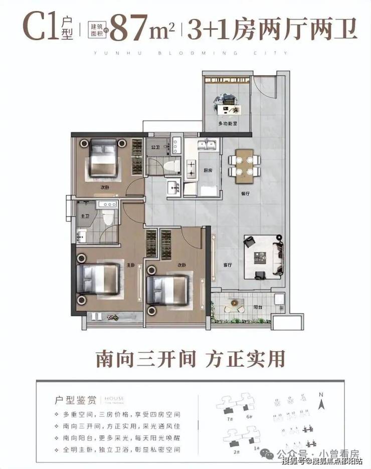 高性价比的全龄段人居N+1户型,户型涵盖约70-140㎡三-六房。