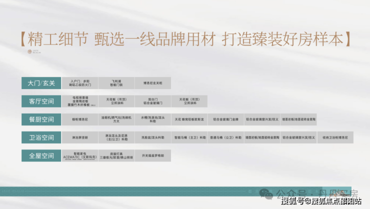 项目配置现代轻奢品质精装,定义都会私享家;竹木纤维环保基材,健康环保,抗菌防潮,严选飞利浦、博洛尼、科勒、方太等国内一线品牌,全屋日立中央空调、智能家居,成就理想精致生活范本