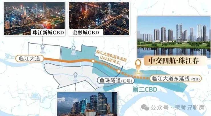 自驾的话,相对更方便些,出门就是黄埔大道和中山大道两条主干线,去珠金琶CBD都非常近,加上附近还有在建的临江大道东延线,预计25年正式完工,通车后将彻底打通沿江经济带,可连接珠江两岸的鱼珠隧道