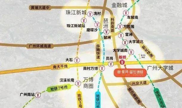 项目一期距离地铁7号线板桥站步行约600米左右,二期会远200米左右!从项目去往万博、南站、大学城、科学城等地都非常方便,无需换乘,而且项目乘坐地铁至万博,可换乘18号线,去珠江新城、琶洲也很方便,自驾的话,项目临近南大干线,可快速转新化快速,南大干线且没有红绿灯。星河盛世锦城开发商电话:400-825-6030