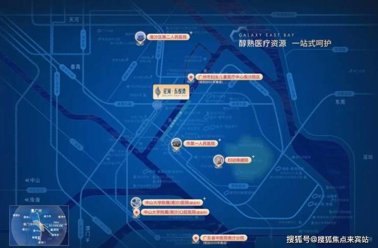 5分钟可达南沙妇女儿童医疗中心,3公里内南沙中心医院、中大附属口腔医院、中大附属第一医院聚集。