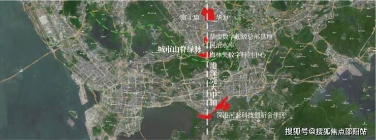 ④深圳发展中轴,华南数字超级总部基地、星河world总部基地、坂雪岗科技城、北站产融结合示范区、梅彩新一代信息科技,连成深圳中轴含金量置顶的价值金线。