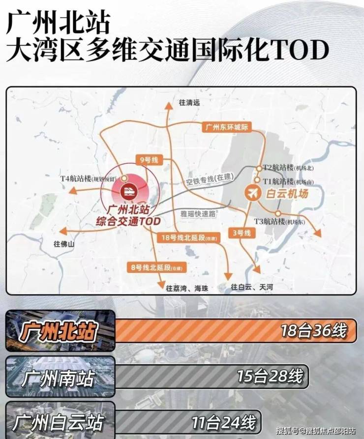 很重要的一点是,它还将依托白云机场T4航站楼、APM线,打造以空铁融合、站城一体规划北站商务区,重点发展金融、商务服务业、酒店业等产业。