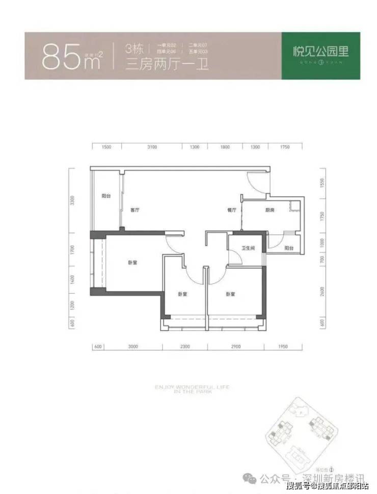 85㎡的3房2厅1卫,折后总价297-319万/套,单价3.49-3.75万/㎡。
