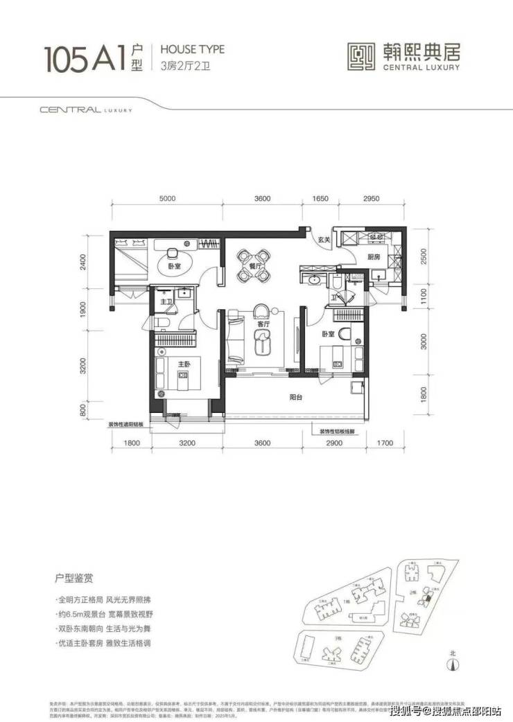 A1户型:罕见7.2米双阳台设计,连接客厅与次卧,晾晒休闲两不误。厨房预留双开门冰箱位。