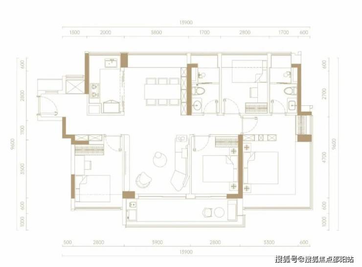 建面约116㎡4房2卫,超高的空间利用率