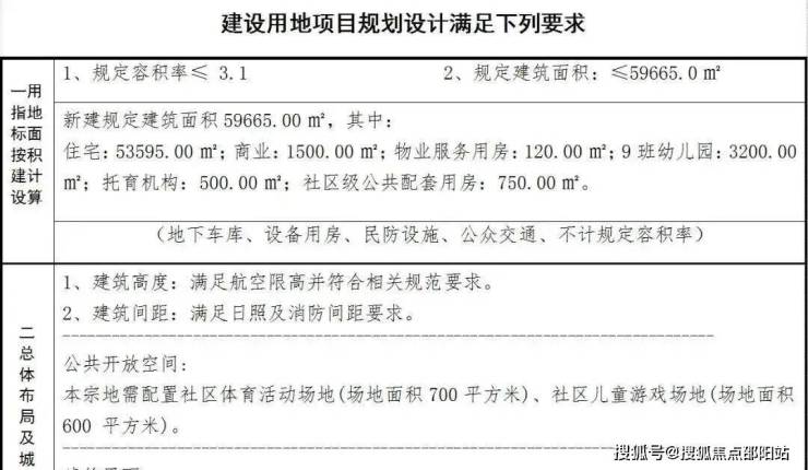 根据规划设计要求,地块占地面积19246.94㎡,规定容积率≤3.1,建筑面积59665㎡,包括53595㎡住宅,1500㎡商业,住宅和商业允许分割转让;另有还规划有3200㎡9班幼儿园,以及500㎡托育机构等。