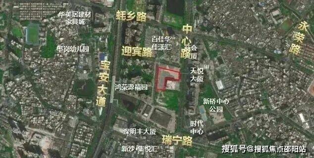 项目位于宝安区新桥街道中心路与瑞宁路交汇处西北侧,项目西侧是鸿荣源禧园小区,临近地铁11号线沙井站C、D出口,周边居住氛围较为浓厚。