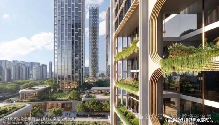 项目由五座150-250米塔楼组成,区别于周边规整垂直的传统塔楼,采用错落布局和平面退台设计,以优化深圳湾景观视野,塑造出更加立体、有机的城市天际线。
