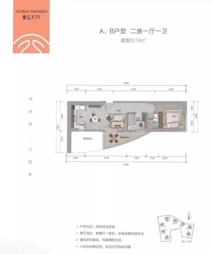 在售户型:69/74/76㎡
