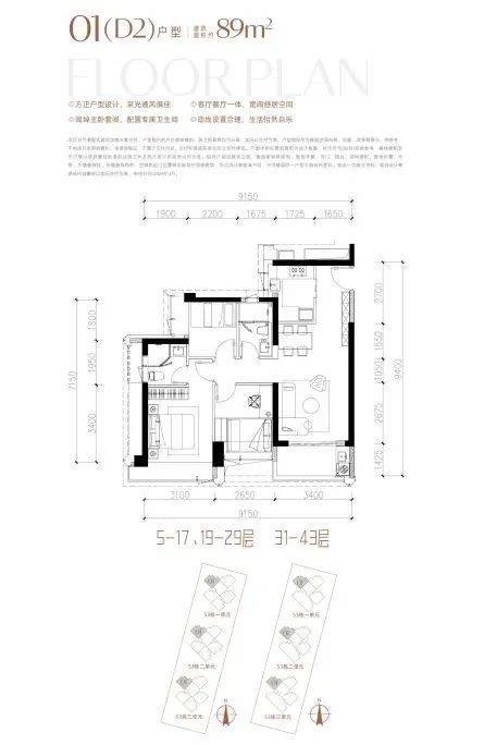 约89㎡3房2厅2卫,户型方正呈竖厅布置,结构上客餐厅一体、动静分区。设计上充分贯彻实用性,约89㎡做到少见的3房2卫,在前海这类改善片区的稀缺性很高。