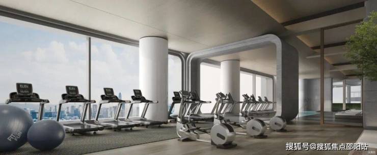 配备丰富器材的云端健身中心,与楼下绿意掩映的社区跑道,