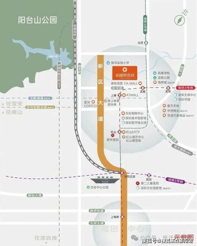 直线距离约500米:港铁颂荟TIA MALL;3公里范围内:壹方天地、华南首家COSTCO、天虹商业中心、红山6979、龙华海岸城(规划中)、华润上塘万象系商业(规划中)、中洲商业中心(规划中)等全系缤纷商业。