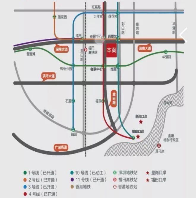 无缝接驳“五线换乘”岗厦北综合超级枢纽, 2公里内即达全国最大陆路口岸福田口岸及皇岗口岸
