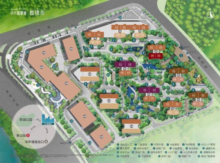 中兴智慧城懿禧府:项目是离深中通道出口仅800米,是深中通道桥头堡项目,更是真正的地铁上盖物业,东瞰伶仃洋,西望翠湖公园,南北由茅龙河水域大面积覆盖,拥有海景、湖景、江景三面环绕的滨水景观和三面环公园的生态环境。中山未来最具人气的沙滩公园最近的唯一项 目,更能近距离感受270米深中通道主塔地标性景观,以后世界打卡的地标,是你窗前的风景。更有世界级TOD香山站,让你的物业价值独领人才岛!