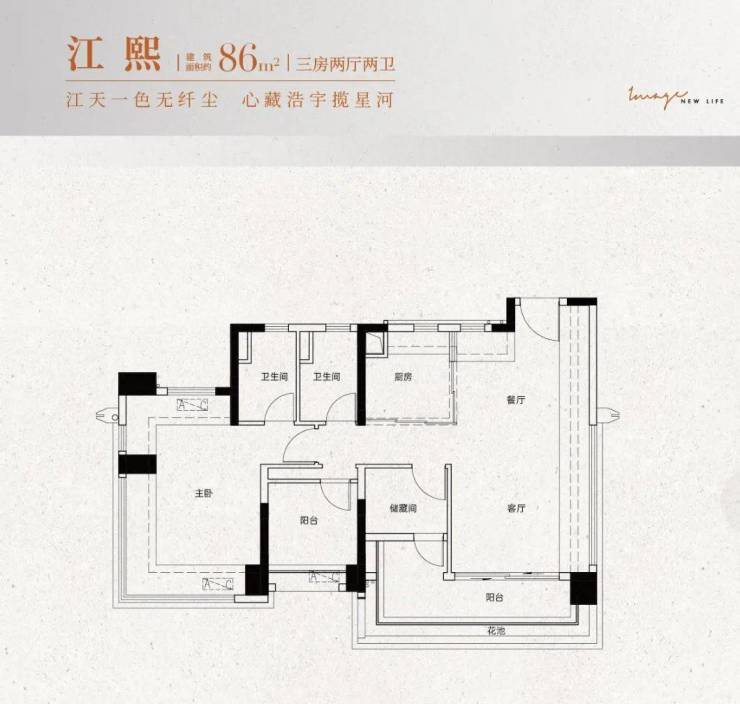 ①建面约90㎡:三房两厅两卫设计,南向观景大阳台,全屋动静分离,主卧带270°飘窗