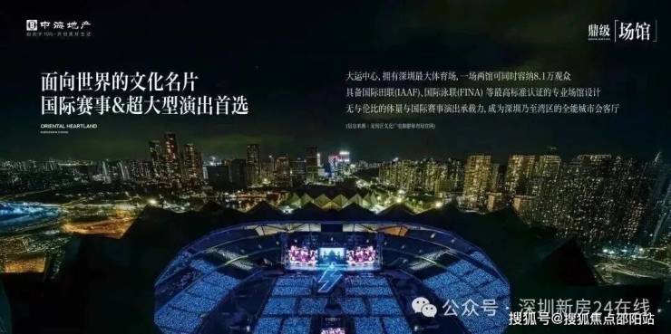 大运中心拥有深圳最大体育场,一场两馆可同时容纳约8.1万观众,具备国际田联(IAAF)、国际泳联(FINA)等最高标准认证的专业场馆设计,是国际赛事与超大型演出的首选。项目头排对望大运中心,,近享家门口的世界盛会。(信息来源:龙岗区文化广电旅游体育局官网)