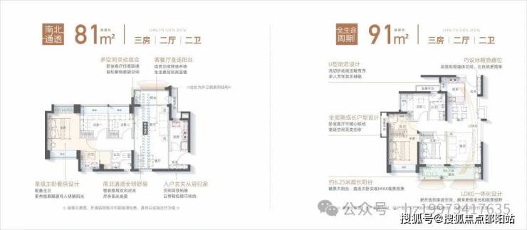 ①精聚焦青年家庭需求,联发精研定制建面约81/91㎡超能三房两卫成长空间,综合使用率高;