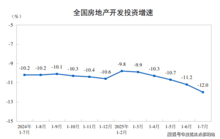 1—7月份,全国房地产开发投资53580亿元,同比下降12.0%(按可比口径计算,详见附注6);其中,住宅投资41208亿元,下降10.9%。