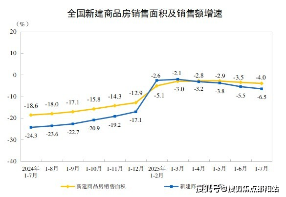 1—7月份,新建商品房销售面积51560万平方米,同比下降4.0%;其中住宅销售面积下降4.1%。新建商品房销售额49566亿元,下降6.5%;其中住宅销售额下降6.2%。