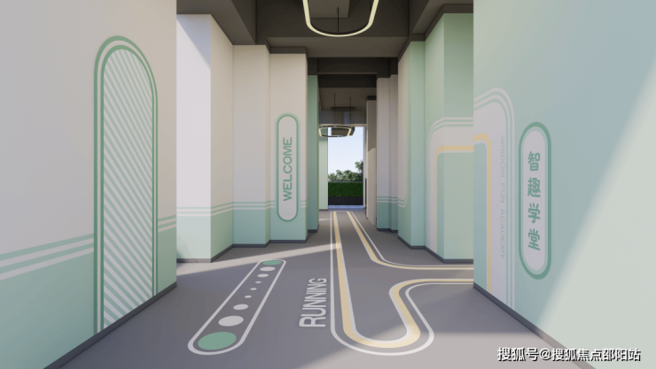 还有一个艺术与趣味融合的“童趣乐园”,薄荷绿墙面环抱投篮区,绿白轨迹引导童趣投射。复合游乐场设有学步区、弹簧木马与数字墙,让孩子感受艺术与趣味融合的创意氛围。飞机造型滑梯以明快薄荷黄交织色系,邀孩子滑行探索。童声穿透钢筋森林,笑声在此刻成自由生长的印记。