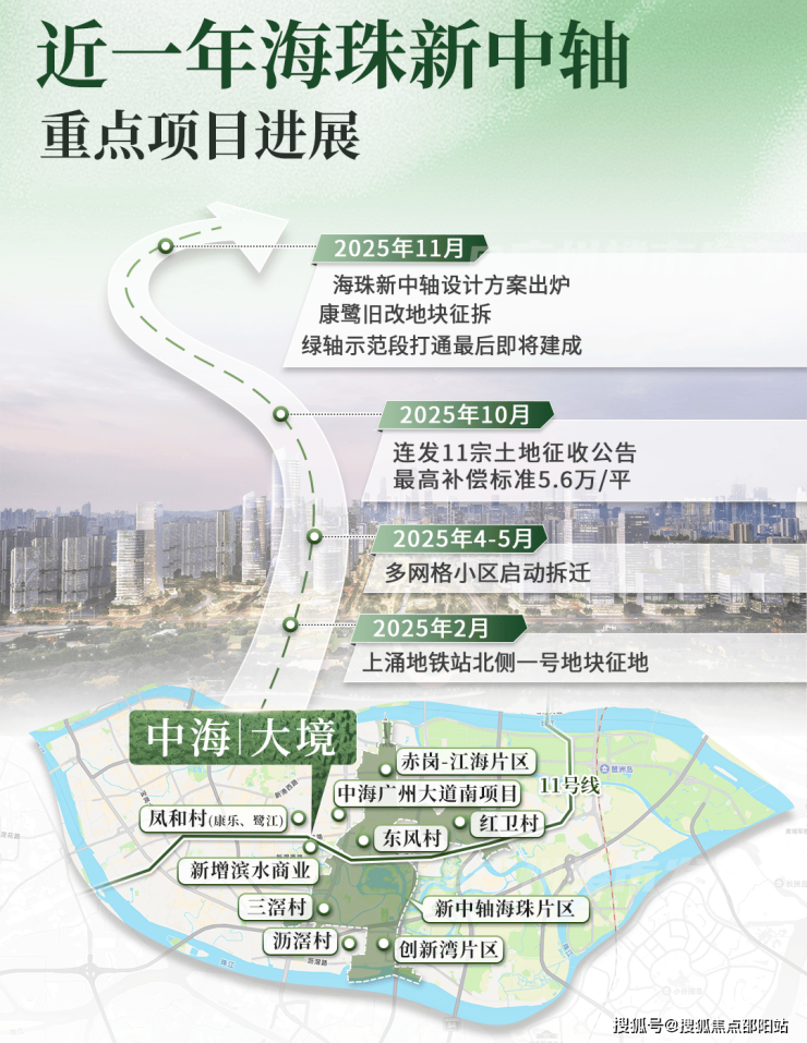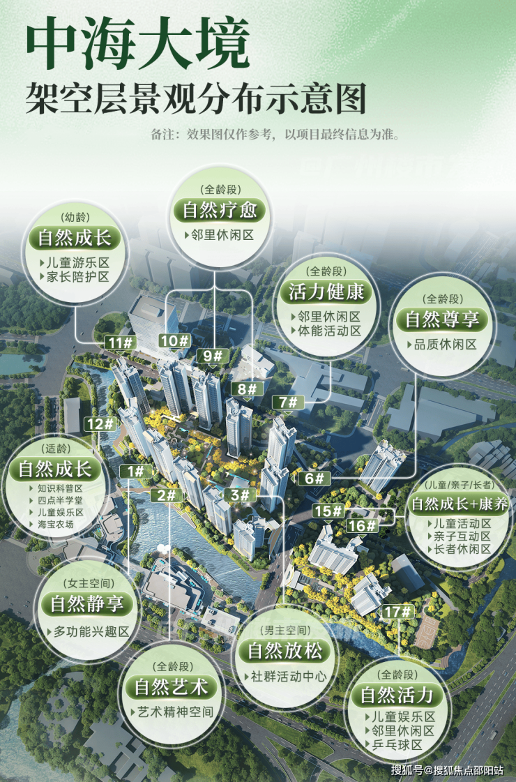 中海大境踞海珠新中轴南段,由双央企中海地产与中建四局联袂匠造,是海珠湿地畔标杆级生态豪宅。项目占地约 17.7 万㎡,规划 14 栋高层,容积率 3.8、绿化率 35%,配约 5 万㎡湿地主题园林与高定泛会所,车位比高达 1:2.1,居住舒适度拉满。