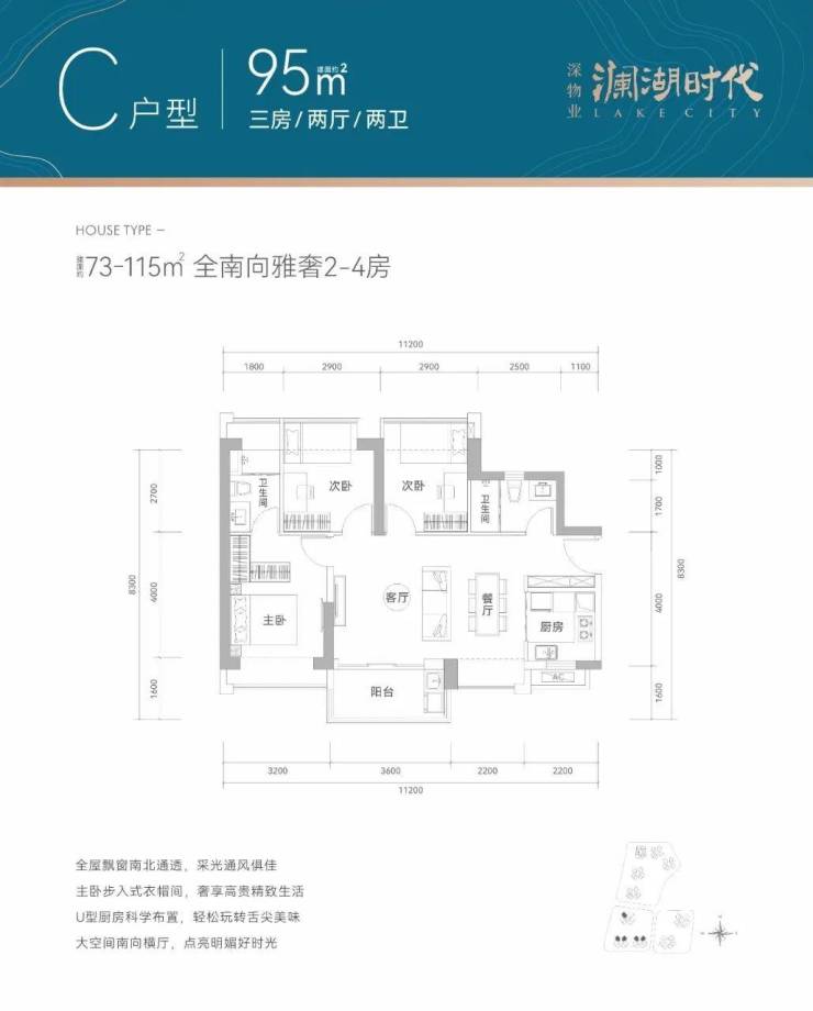 产品面积段:建面约73-115㎡全南宽奢2-4房
