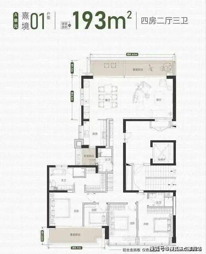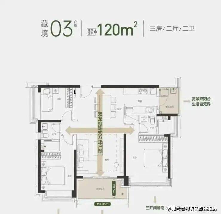 位于1/3栋03户。户型方正,阳台进深1.5米,可270°观景。主卧为套房,带景观浴室。